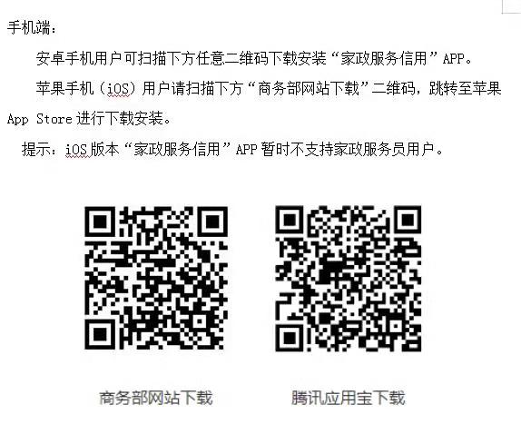現(xiàn)商務(wù)部家政服務(wù)信息管理應(yīng)用-家政服務(wù)信用信息平臺(tái)已上線,平臺(tái)包括桌面端和手機(jī)程序(APP)兩部分,請通過以下地址登錄開展相關(guān)業(yè)務(wù)。