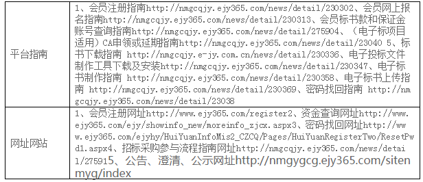| 附件:設(shè)備清單 (2)投標(biāo)人資格要求 本次招標(biāo)要求投標(biāo)人須具備以下資質(zhì),人員、設(shè)備、資金等方面具有相應(yīng)的能力: ①須在工商行政管理部門(mén)辦理登記注冊(cè)(具有有效營(yíng)業(yè)執(zhí)照); ②所供貨物均須提供產(chǎn)品合格證,電器類產(chǎn)品須提供“3C”認(rèn)證證書(shū)。 ③所有資質(zhì)文件、報(bào)告等真實(shí)有效,不得出現(xiàn)偽造、涂改、借用等情形。 ④履行合同所必需的設(shè)備和專業(yè)技術(shù)能力及專業(yè)技術(shù)人員; ⑤投標(biāo)設(shè)備必須滿足招標(biāo)人的設(shè)備參數(shù)要求,需要提供投標(biāo)設(shè)備型號(hào)品牌、各模塊性能參數(shù)、尺寸等材料和設(shè)備正面、側(cè)面、背面、平視俯視等角度彩照; ⑥具有良好的銀行資信、商業(yè)信譽(yù)和履行合同的能力,提供財(cái)務(wù)報(bào)告或銀行資信證明; ⑦在最近三年內(nèi)沒(méi)有騙取中標(biāo)和嚴(yán)重違約等問(wèn)題,可提供承諾書(shū)或法人在“國(guó)家企業(yè)信用信息公示系統(tǒng)”和“中國(guó)裁判文書(shū)”網(wǎng)無(wú)不良記錄的打印頁(yè); ⑧單位負(fù)責(zé)人為同一人或者存在直接控股、管理關(guān)系的不同供應(yīng)商,不得參加同一合同項(xiàng)下的采購(gòu)活動(dòng);與采購(gòu)人存在利害關(guān)系可能影響采購(gòu)公正性的法人、其他組織,不得參加競(jìng)標(biāo); ⑨不接受聯(lián)合體 (3)招標(biāo)文件的獲取 凡有意參加本項(xiàng)目的潛在投標(biāo)人,請(qǐng)于2020年8月26日9時(shí)至2020年9月2日17時(shí) (北京時(shí)間,下同),登錄內(nèi)蒙古產(chǎn)權(quán)交易市場(chǎng)網(wǎng)站“http://www.nmcqjy.com/”進(jìn)行會(huì)員注冊(cè)及辦理CA, CA申領(lǐng)方法及平臺(tái)操作指南請(qǐng)登錄(http://www.ejy365.com/newlogin)進(jìn)行學(xué)習(xí),在網(wǎng)上購(gòu)買(mǎi)并下載招標(biāo)文件。 提示:CA僅用于投標(biāo)文件的加密和解密,CA申領(lǐng)在供應(yīng)商系統(tǒng)中即可完成,建議在開(kāi)標(biāo)時(shí)間前10天以上制作投標(biāo)文件,請(qǐng)注意在領(lǐng)購(gòu)招標(biāo)文件時(shí)間內(nèi)下載招標(biāo)文件,否則將無(wú)法參與本項(xiàng)目,CA售價(jià)250元/個(gè),售后不退。 本次項(xiàng)目的澄清/修改/變更/重新招標(biāo)公告會(huì)通過(guò)網(wǎng)站發(fā)布,請(qǐng)參加的投標(biāo)人及時(shí)登錄系統(tǒng)查看。 招標(biāo)文件(僅支持E交易下載領(lǐng)取)售價(jià)500元/標(biāo)段,售后不退。 賬戶名:內(nèi)蒙古產(chǎn)權(quán)交易中心有限責(zé)任公司 開(kāi)戶行:中國(guó)銀行內(nèi)蒙古自治區(qū)分行營(yíng)業(yè)部 行號(hào):104191014056 賬號(hào):以下載標(biāo)書(shū)系統(tǒng)彈出通知信息為準(zhǔn) 串標(biāo)行為認(rèn)定:標(biāo)書(shū)款和保證金的子帳號(hào)為隨機(jī)生成,參加同一項(xiàng)目的多家供應(yīng)商的標(biāo)書(shū)款或保證金匯入同一子賬號(hào),視為串標(biāo)行為。 (4)投標(biāo)文件的遞交 投標(biāo)文件遞交的截止時(shí)間(投標(biāo)截止時(shí)間,下同)為2020年9月9日9時(shí)30分,投標(biāo)人應(yīng)在截止時(shí)間前通過(guò)內(nèi)蒙古產(chǎn)權(quán)交易中心電子(E交易平臺(tái))招標(biāo)投標(biāo)交易平臺(tái)遞交電子投標(biāo)文件。 注:逾期送達(dá)的投標(biāo)文件,電子招標(biāo)投標(biāo)交易平臺(tái)將予以拒收。采用遠(yuǎn)程電子開(kāi)標(biāo),投標(biāo)人無(wú)須到達(dá)開(kāi)標(biāo)現(xiàn)場(chǎng),可遠(yuǎn)程使用CA解密。 (5)付款方式 協(xié)議簽訂之日起5個(gè)工作日內(nèi),我方向供應(yīng)商支付貨款總金額的45%作為定金,并于到貨5個(gè)工作日內(nèi),供應(yīng)商向我方提供全額形式增值稅普通發(fā)票,再付50%貨款,剩余5%貨款作為質(zhì)保金,如無(wú)質(zhì)量問(wèn)題1年后付清。 3.聯(lián)系方式 采購(gòu)人名稱:內(nèi)蒙古烏蘭美健康服務(wù)集團(tuán)有限公司 聯(lián) 系 人:姚佳秀 聯(lián)系電話:17604742599 內(nèi)蒙古產(chǎn)權(quán)交易中心有限責(zé)任公司 地址:內(nèi)蒙古呼和浩特市賽罕區(qū)阿吉泰路3號(hào) 聯(lián) 系 人: 楊艷 聯(lián)系電話: 18586095937 郵箱:nmcqcg@163.com 技術(shù)支持電話:0471-3473040(報(bào)名、標(biāo)書(shū)下載上傳等)/0471-3473016(CA申請(qǐng)) |
